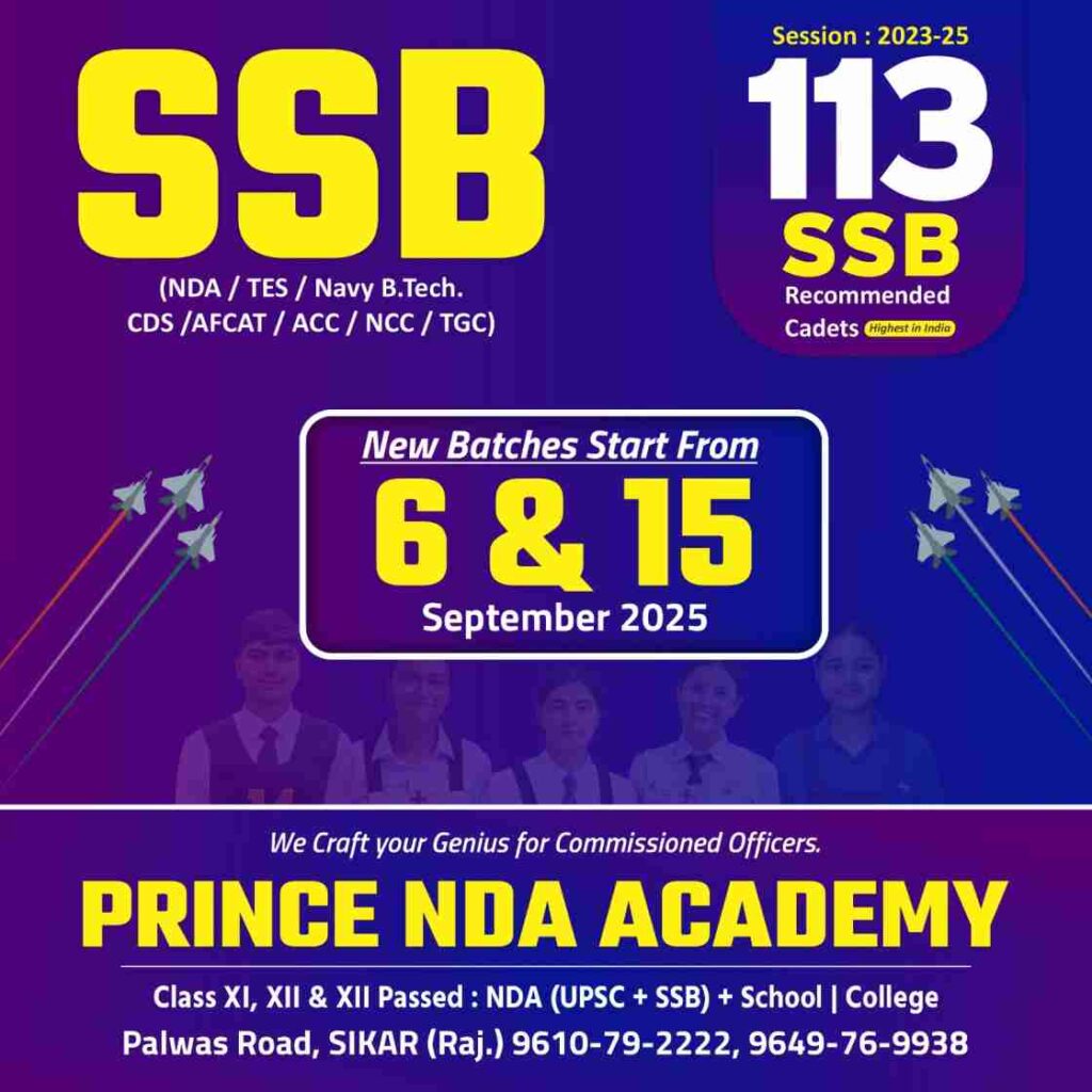 To get More Information about Prince NDA Academy in New Started SSB Batch, please contact us on 9610792222