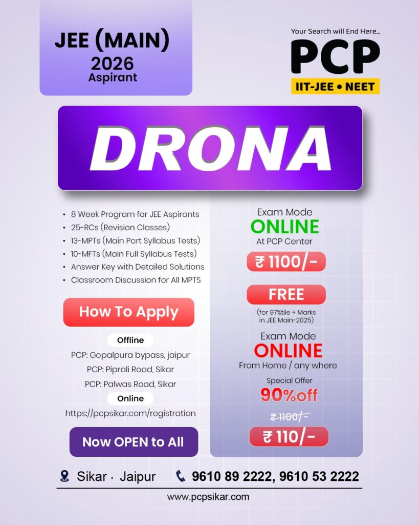 Fee of PCP Sikar’s JEE Advanced 2026 Drona Test Series 2026