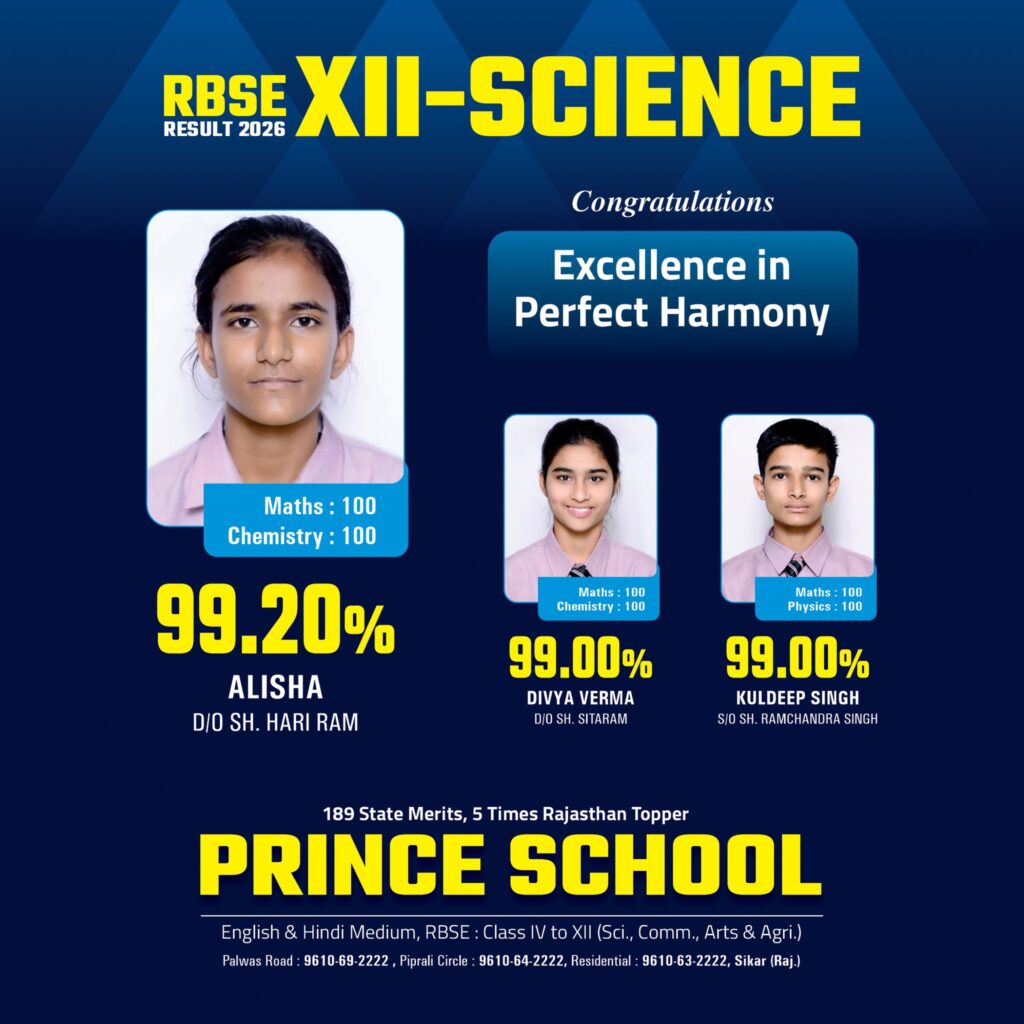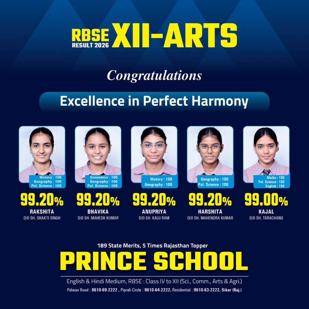 The day we all were waiting for has finally arrived, as the RBSE 12th result, 2026, has been released. As soon as the results came out, students and parents from all over Rajasthan started looking for the results of Prince School, as Prince tops the results every year. So, here we are to share the Prince School Sikar 12th result 2026 with all of you.
