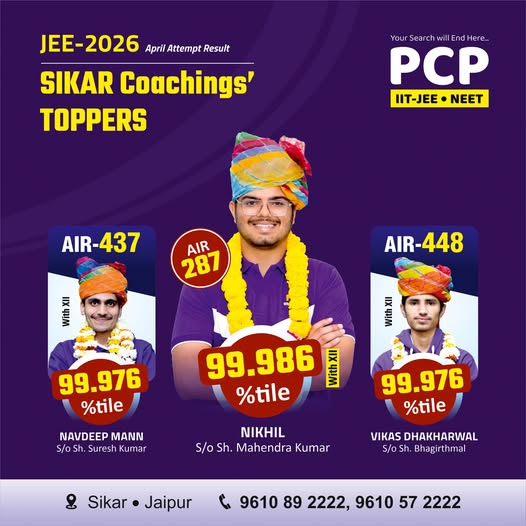 PCP Sikar JEE Main 2026 Result