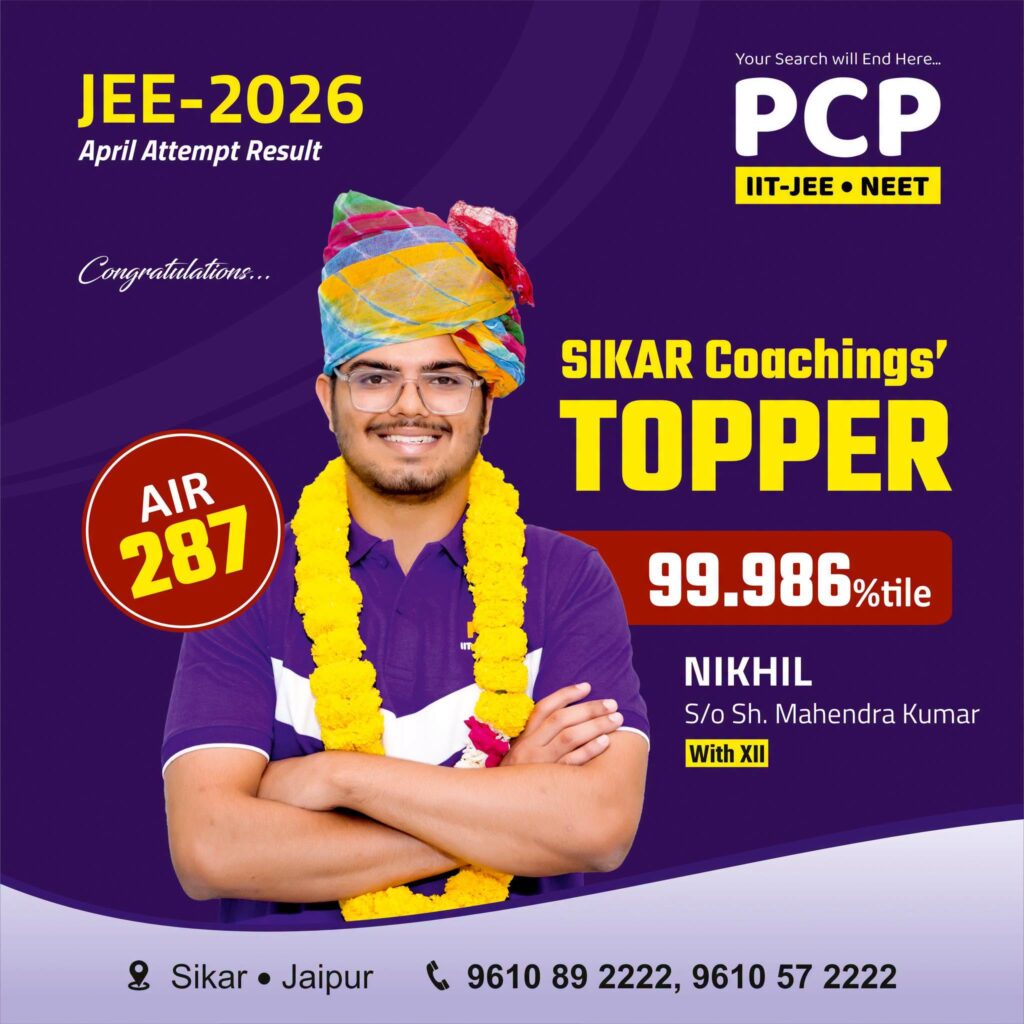 Nikhil Kumar is a regular classroom student of PCP Sikar. He took classes of PCP Sikar, attended doubt counters, took regular mock test series and spent time in self study centers of PCP Sikar that made him turned out as the JEE Mains 2026 Result Sikar topper.