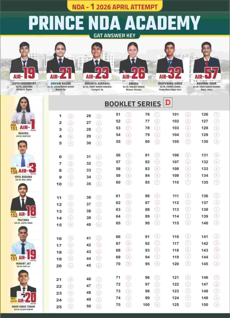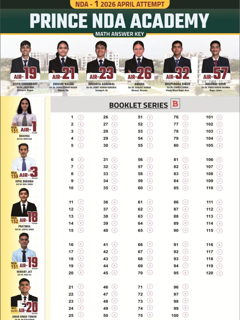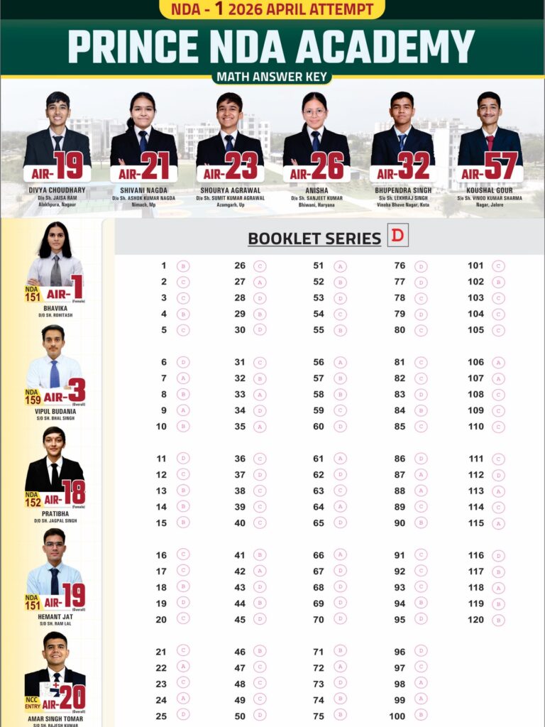 The faculty team of Prince NDA Academy has prepared the answer key for all the codes of both papers of the second session of UPSC NDA and NA 2026 . This is based on which you can evaluate your scorecard.